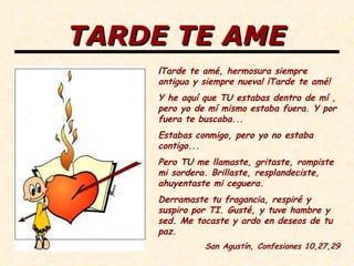 San Agustín by cedbuenco on desktop and mobile. Web Tarde te Ame VIDEO RECREADO POR SAN AGUSTIN. Tarde Te Amé Letra y Música.
