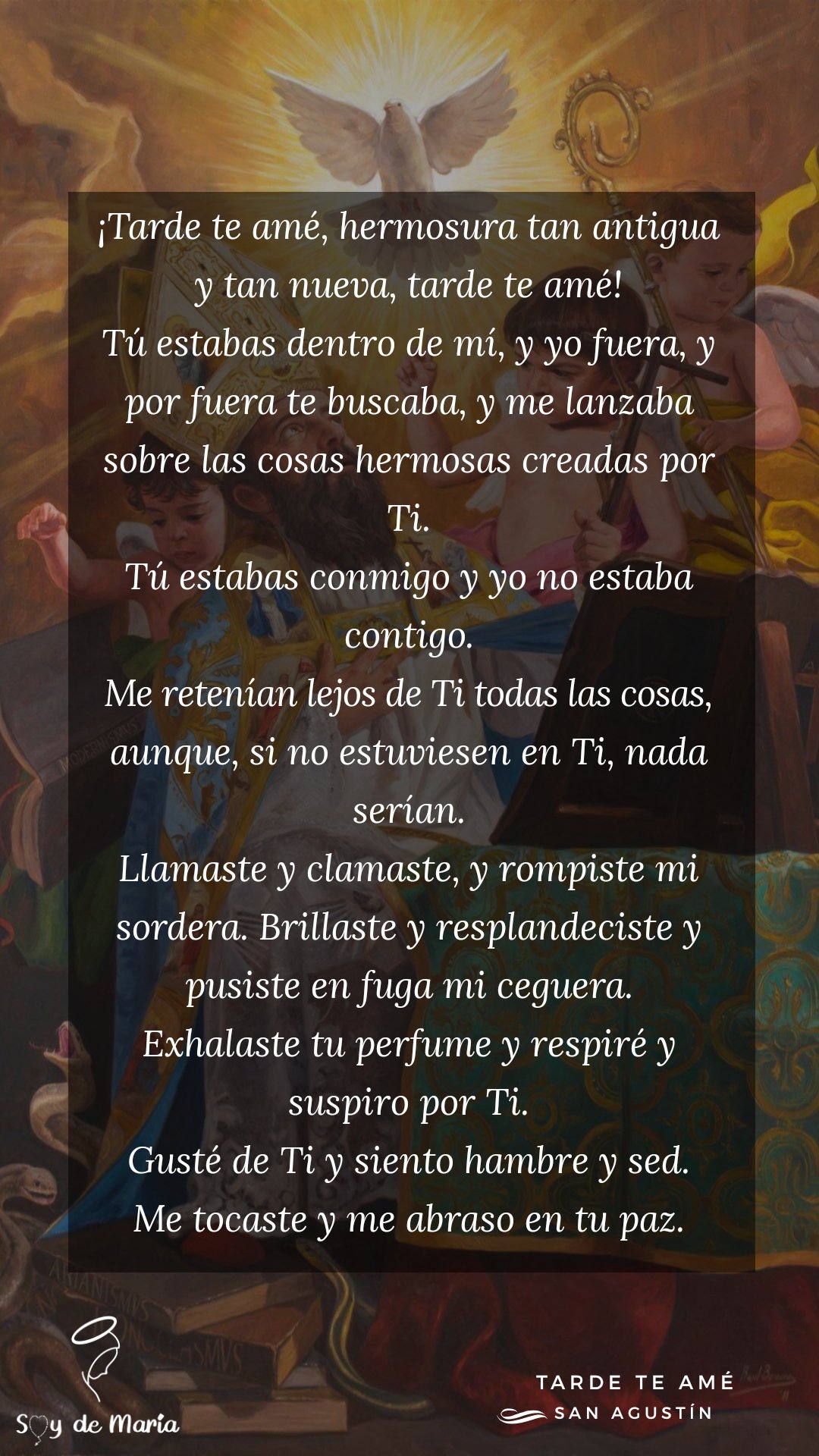 Tarde te amé hermosura tan antigua y tan nueva tarde te amé. Web Tarde Te Amé Poema de San Agustín Padre José Alfredo 3 years ago3 years ago Comment must not exceed 1000 characters 40 plays40 View all likes1 Padre José. Web Vivir En El Amor De Jesus Y Su Madre Maria Tarde Te Ame Oracion De San Agustin Tarde Te Ame Hermosura Tan Antigua Y Tan Nueva Tarde Te Ame Y Tu.