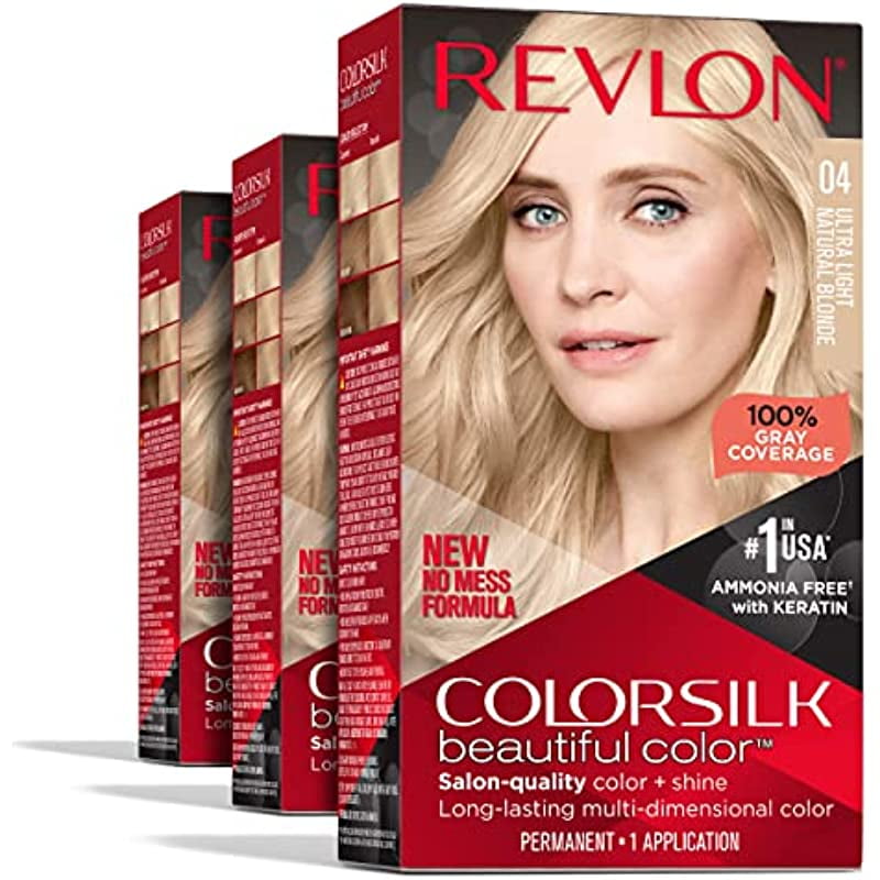 Permanent Hair Color By Revlon Permanent Hair Dye Colorsilk With 100 Gray Coverage Ammonia Free Keratin And Amino Acids 004 Ultra Light Natural Blonde Pack Of 3 Walmart Com